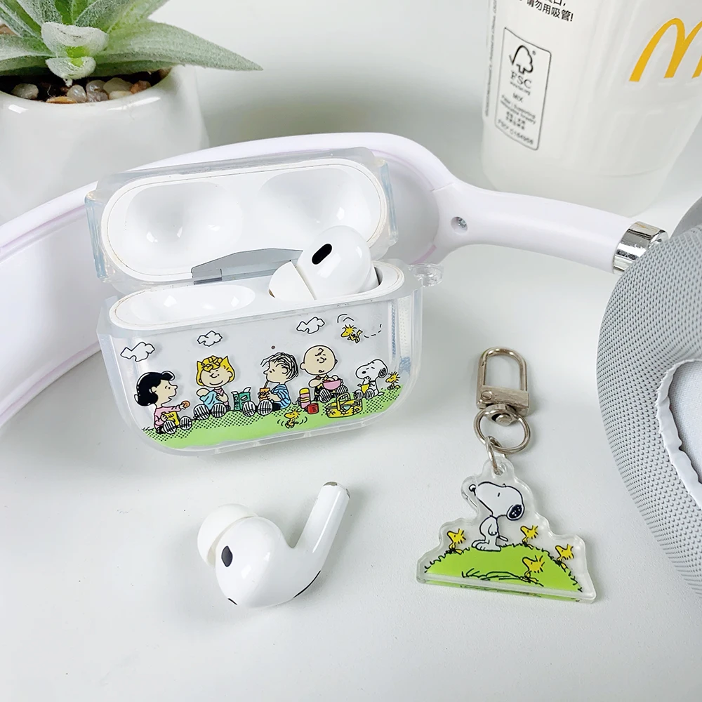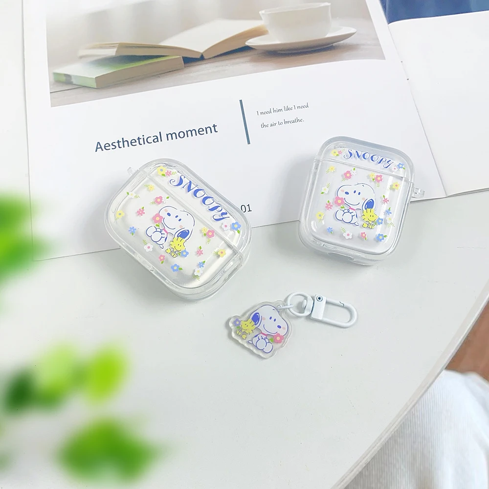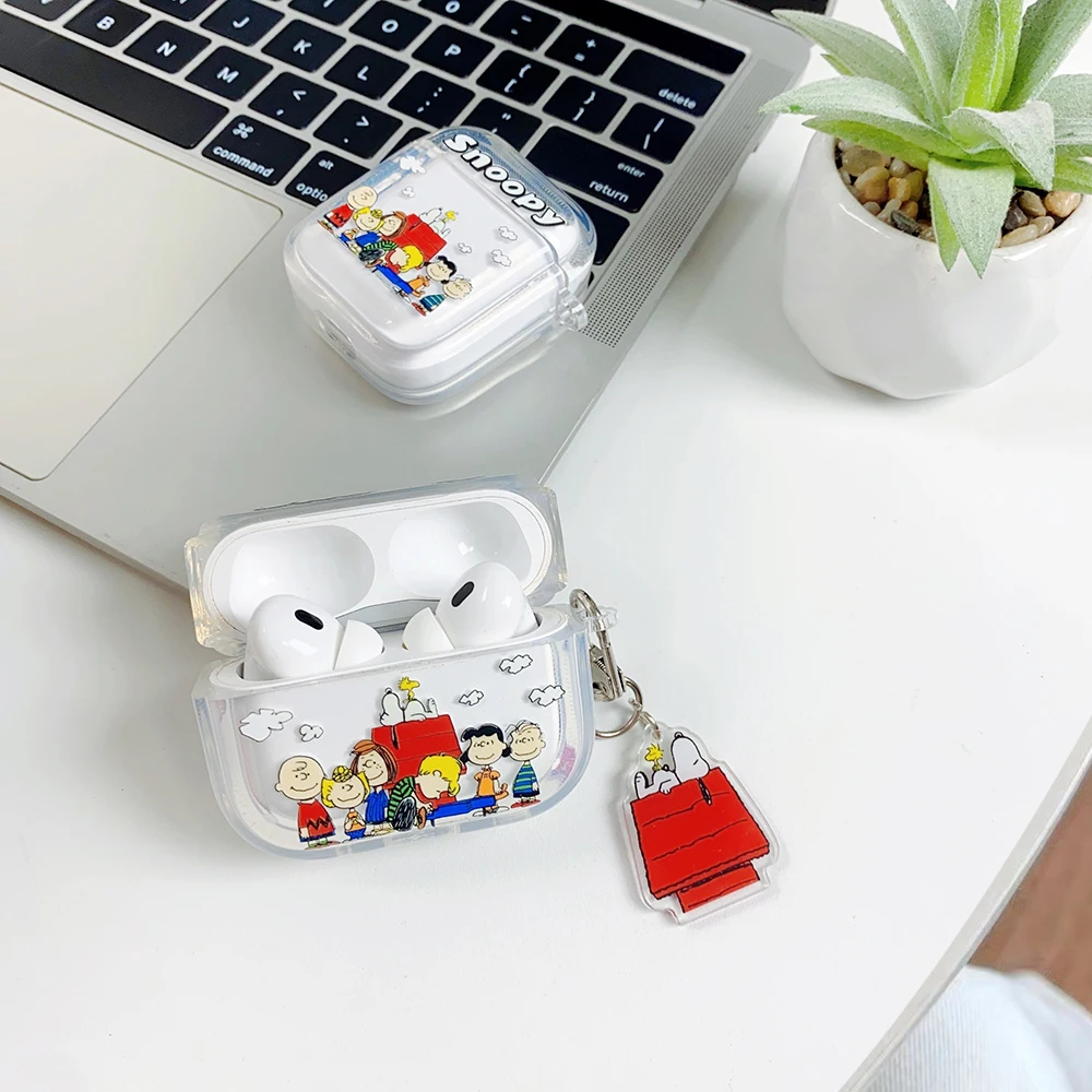 Beloved Puppy Snoopsy ins Funny Scribble Earphone Case For Airpods 1 2 3 4 Pro 3 2 1 With Pendant Soft Transparent Headset Cover